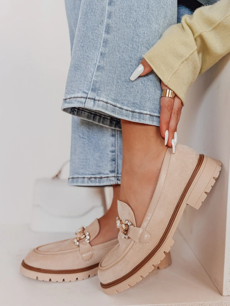 Dámské mokasíny s plochou podrážkou LOFINKA beige FashionStreet ZY0797