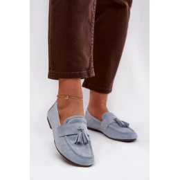 Ploché dámské mokasíny vyrobené z eko semiše jsou stylovou a pohodlnou volbou na každý den. Vepředu jsou dekorativní třásně a zavázání ve tvaru mašle. Měkký materiál zajišťuje pohodlí při nošení a plochá podrážka činí tento model ideálním pro každodenní použití. Mokasíny skvěle doplní jak klasické, tak i volnější stylizace. Při výběru velikosti se řiďte tabulkou velikostí.
