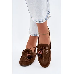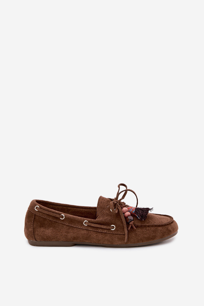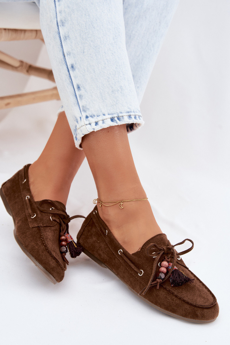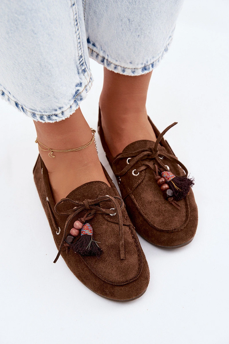 Dámské mokasíny s třásněmi a korálky Hnědé Teresa