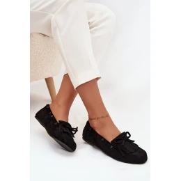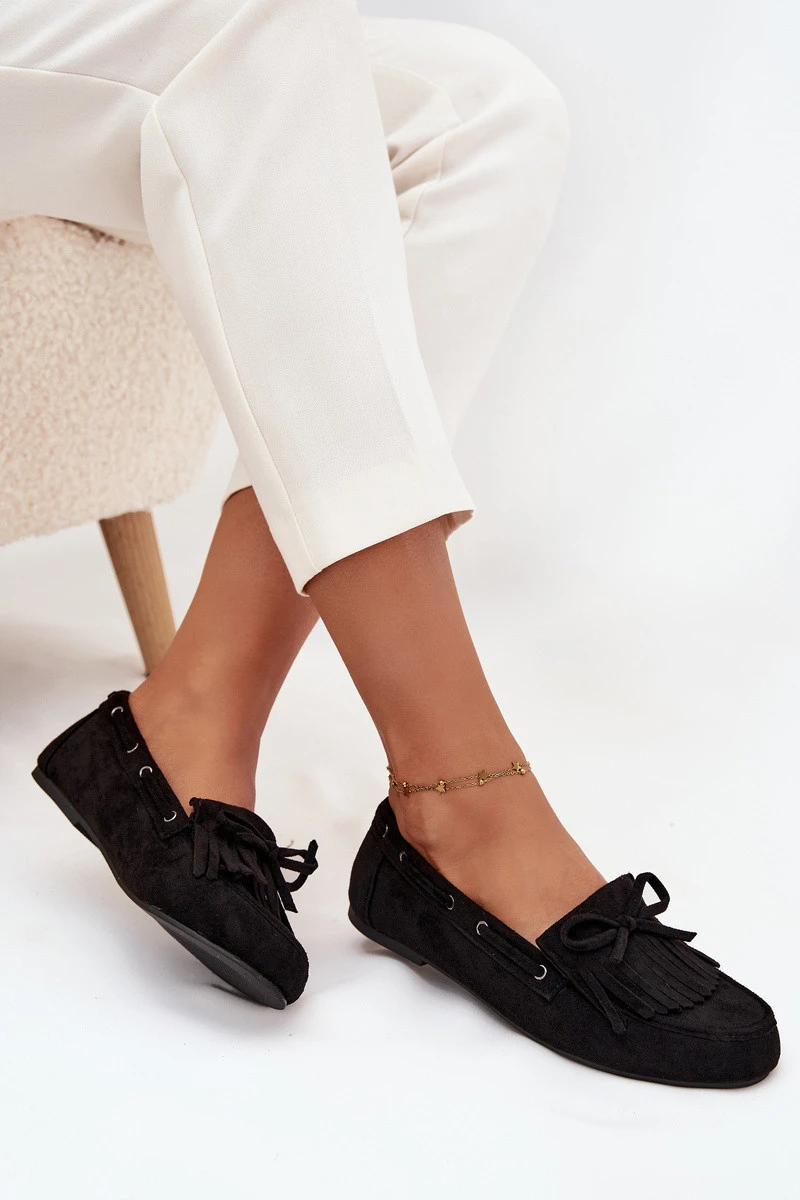 Dámské mokasíny Olivianne z eko semiše v černém provedení kombinují pohodlí s módním designem. Jemné třásně a dekorativní mašle na svršku dodávají botám stylový a elegantní vzhled. Měkký materiál a klasický střih mokasín zajišťují komfort při celodenním nošení. Tento model je vhodný pro každodenní nošení i formálnější příležitosti.