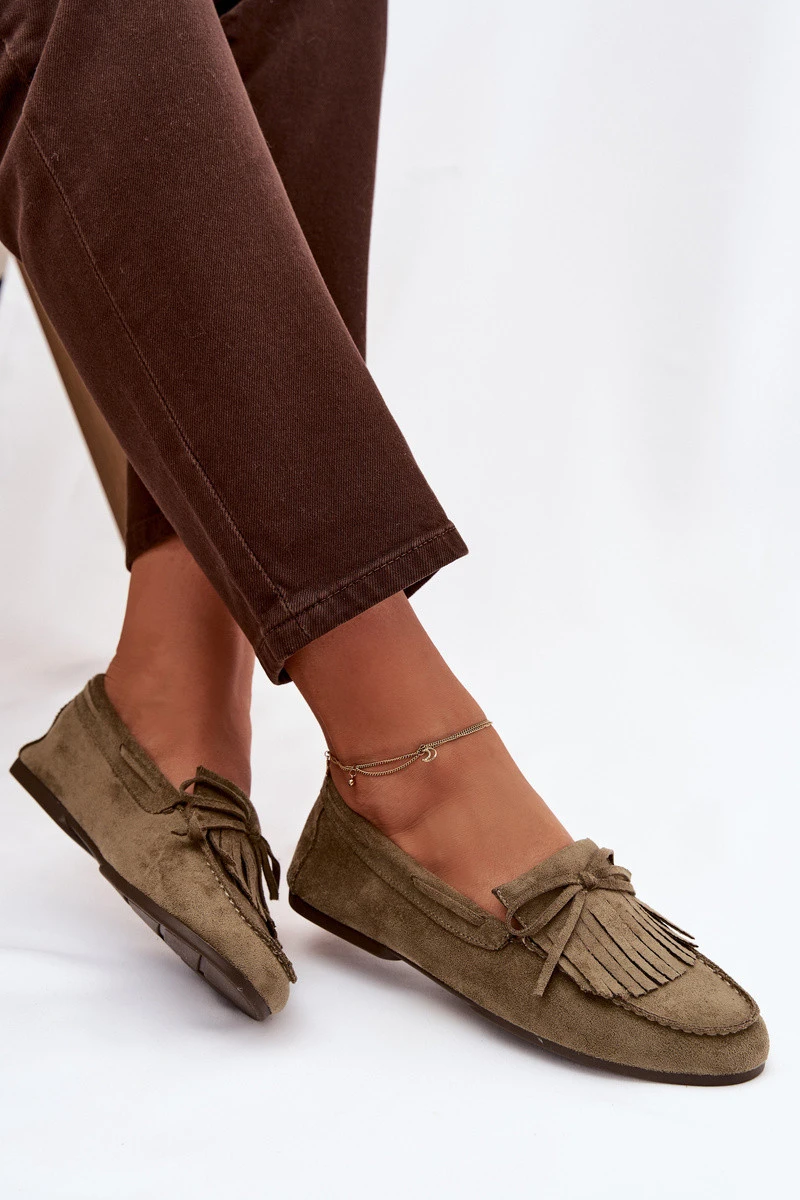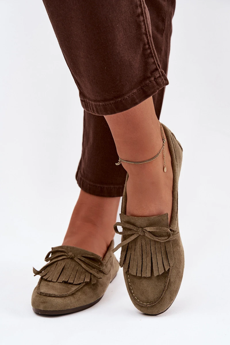 Dámské mokasíny s třásněmi zelené model 21915101 - Boto