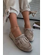 Dámské mokasíny vyrobené z měkkého eko semiše, krásně vypadají na noze. Vepředu jsou dekorativní třásně a ozdobné šněrování ve tvaru mašle, které dodávají jemný, ženský charakter. Vnitřek je potažen měkkou vložkou z eko kůže, díky čemuž mokasíny poskytují pohodlí i během dlouhého dne. Plochá podrážka je činí ideálními jak do práce, tak na procházky či setkání s přáteli. Při výběru velikosti se řiďte tabulkou velikostí.