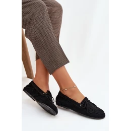 Dámské mokasíny se šněrováním a třásněmi – černé Glorina