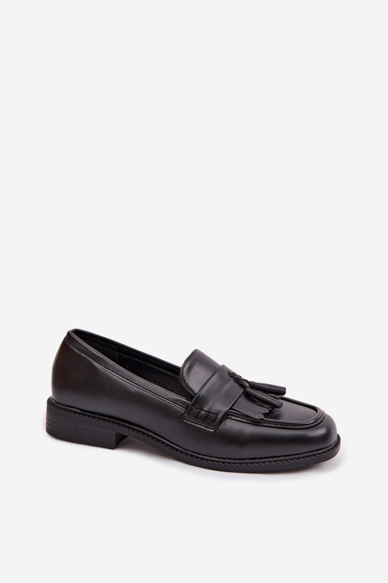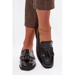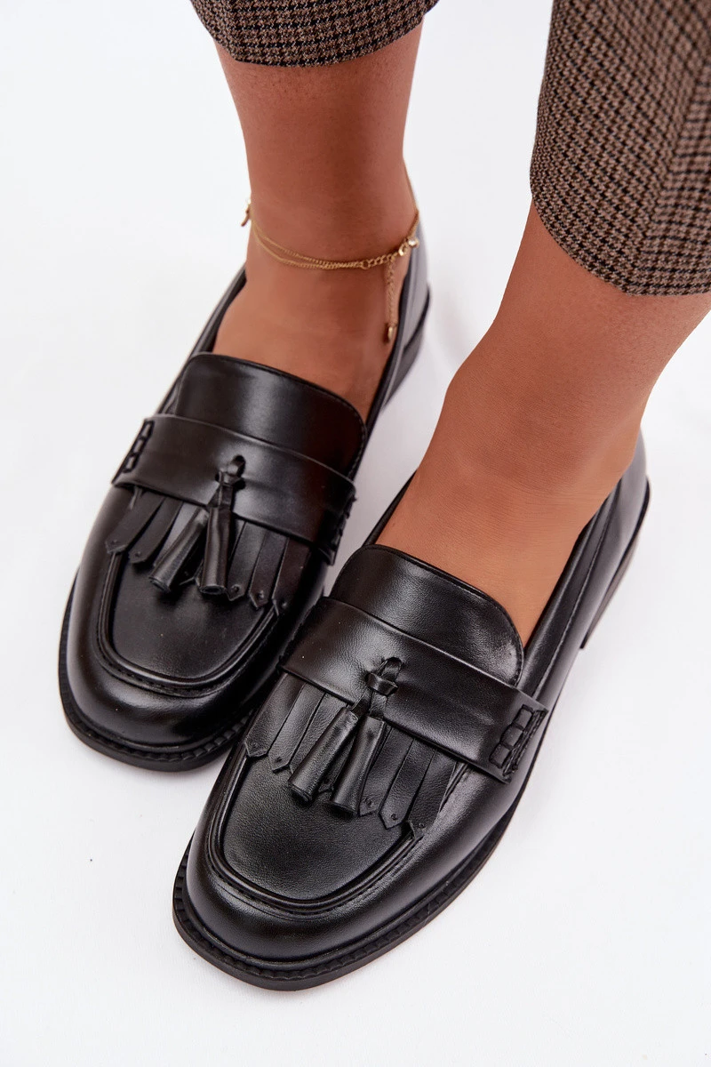 Dámské mokasíny z eko kůže s třásněmi Černé Galera