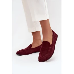 Dámské mokasíny z eko semiše ploché bordové model 21710856 - Boto