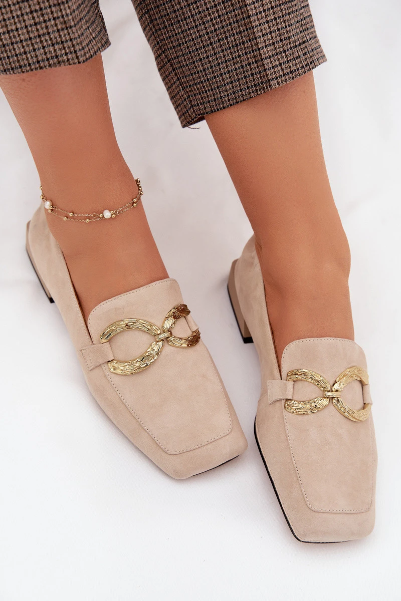 Dámské mokasíny z pravé nubukové kůže se zlatým detailem D&A CR61-3115 Béžové