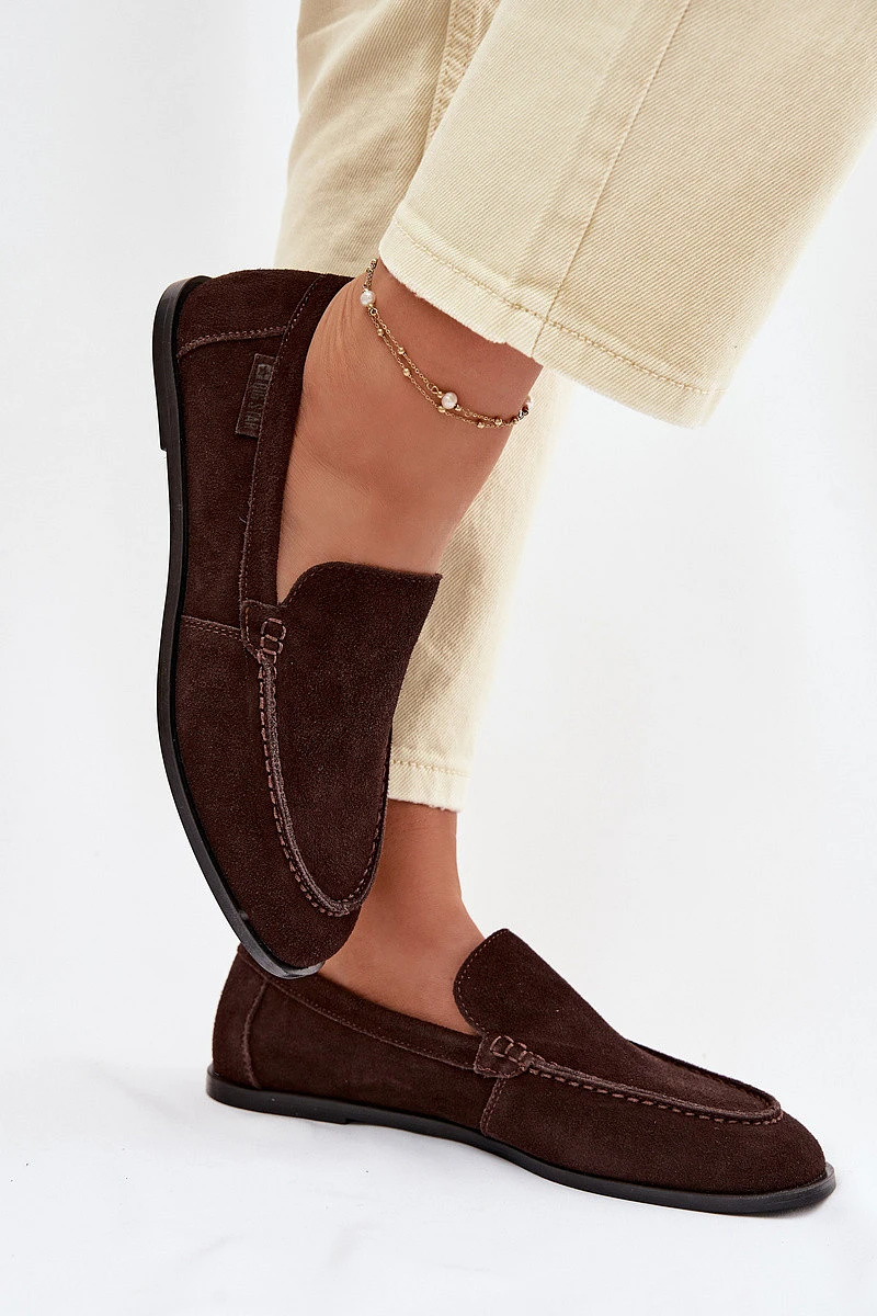 Dámské mokasiny z pravé semišové kůže Big Star TT274208 Čokoládové