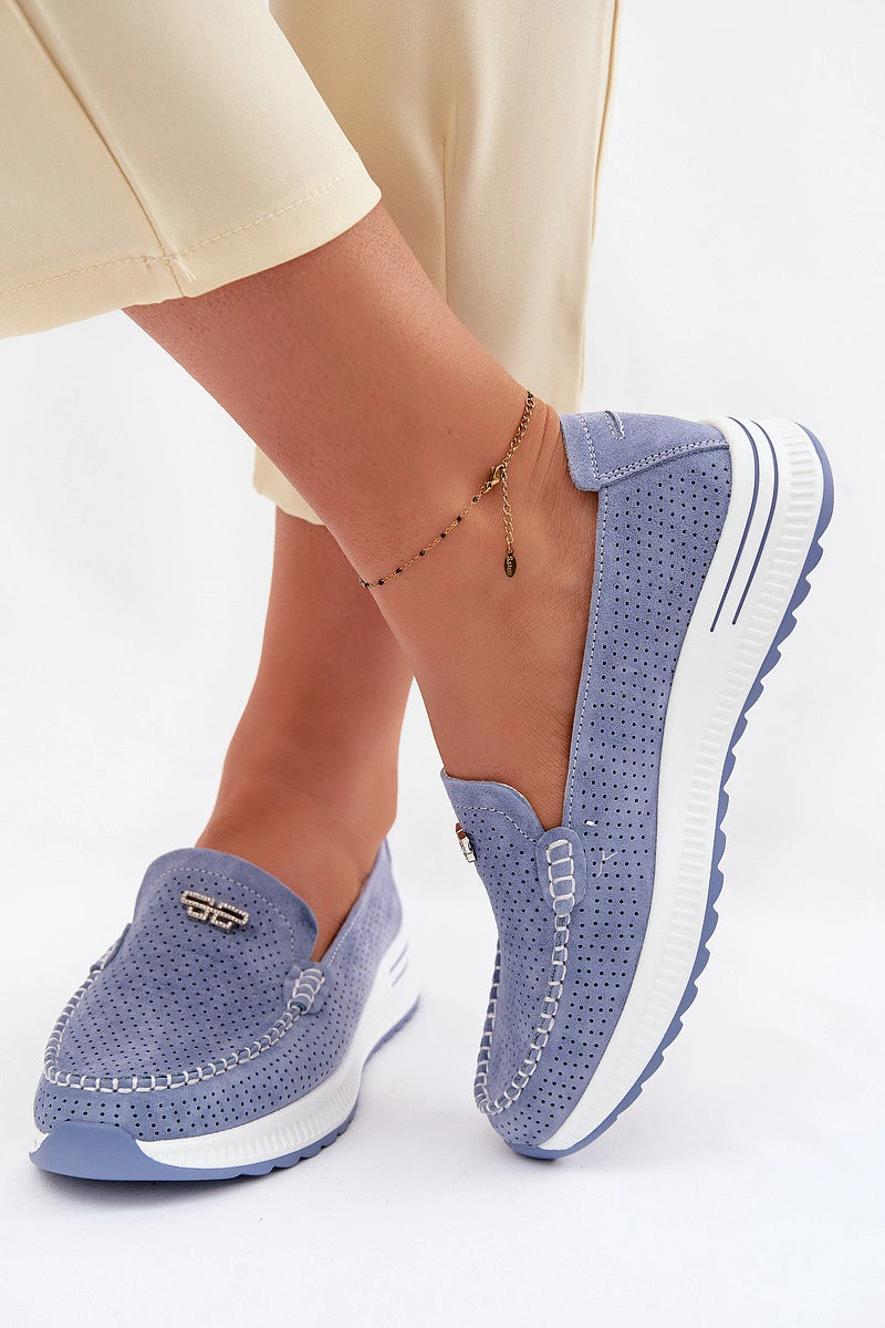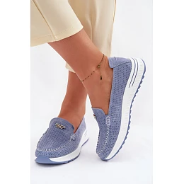 Dámské mokasíny z přírodního semiše modré Demela