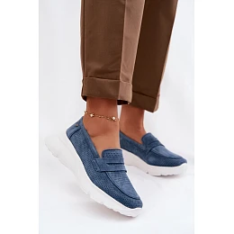 Dámské mokasíny z přírodního semiše na platformě model 22069616 tmavě modré - VINCEZA