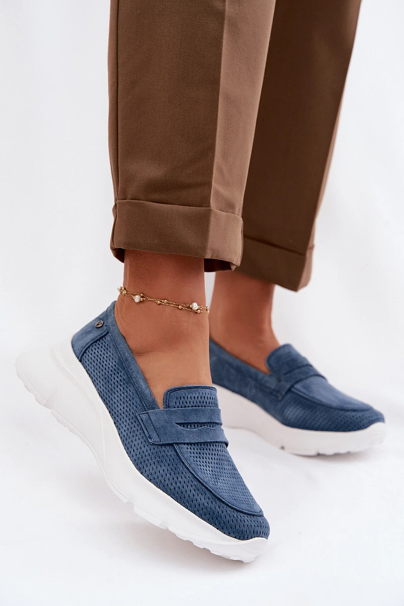 Přidání recenze k Dámské mokasíny z přírodního semiše na platformě Vinceza 79626 tmavě modré