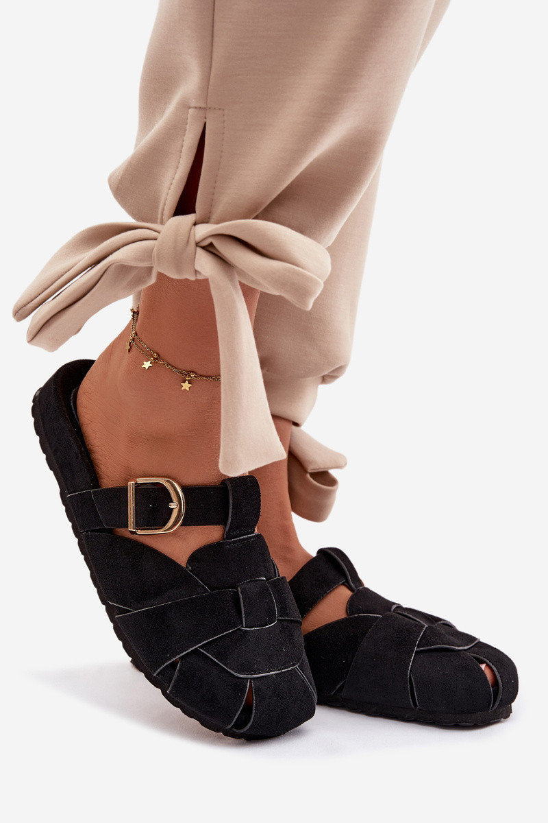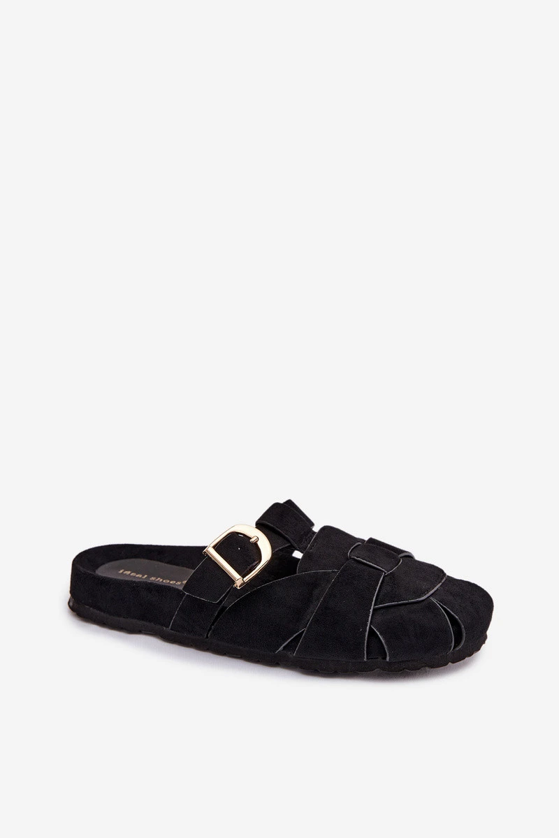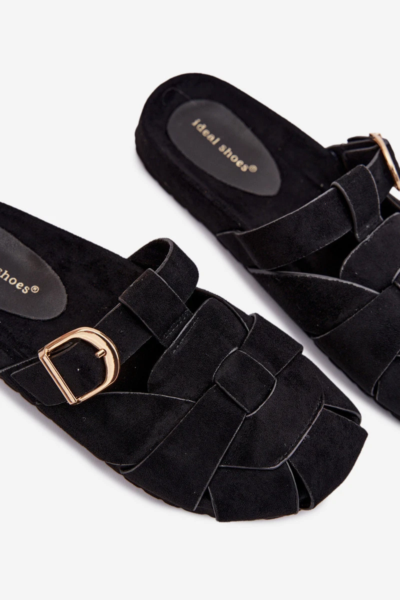 Dámské Mule S Pásky A Zlatou Přezkou Černé Ganelle