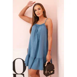 Dámské mušelínové šaty s ramínky a volánem džínovina