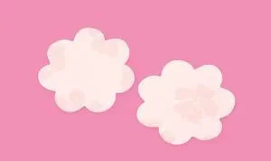 Diskrétní samolepící nálepky na bradavky ve tvaru květinky.