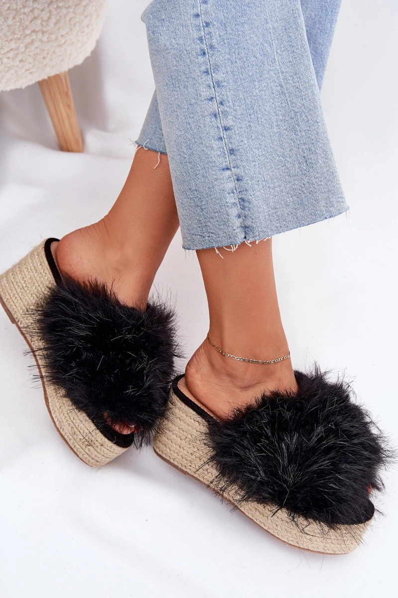 Dámské pantofle s kožešinou jsou módní volbou na letní dny. Uloženy na klínu a platformě s pletením, dodávají lehkost a letní kouzlo, dokonale se hodí k letním šatům, sukním nebo šortkám. Při výběru velikosti se řiďte tabulkou velikostí.