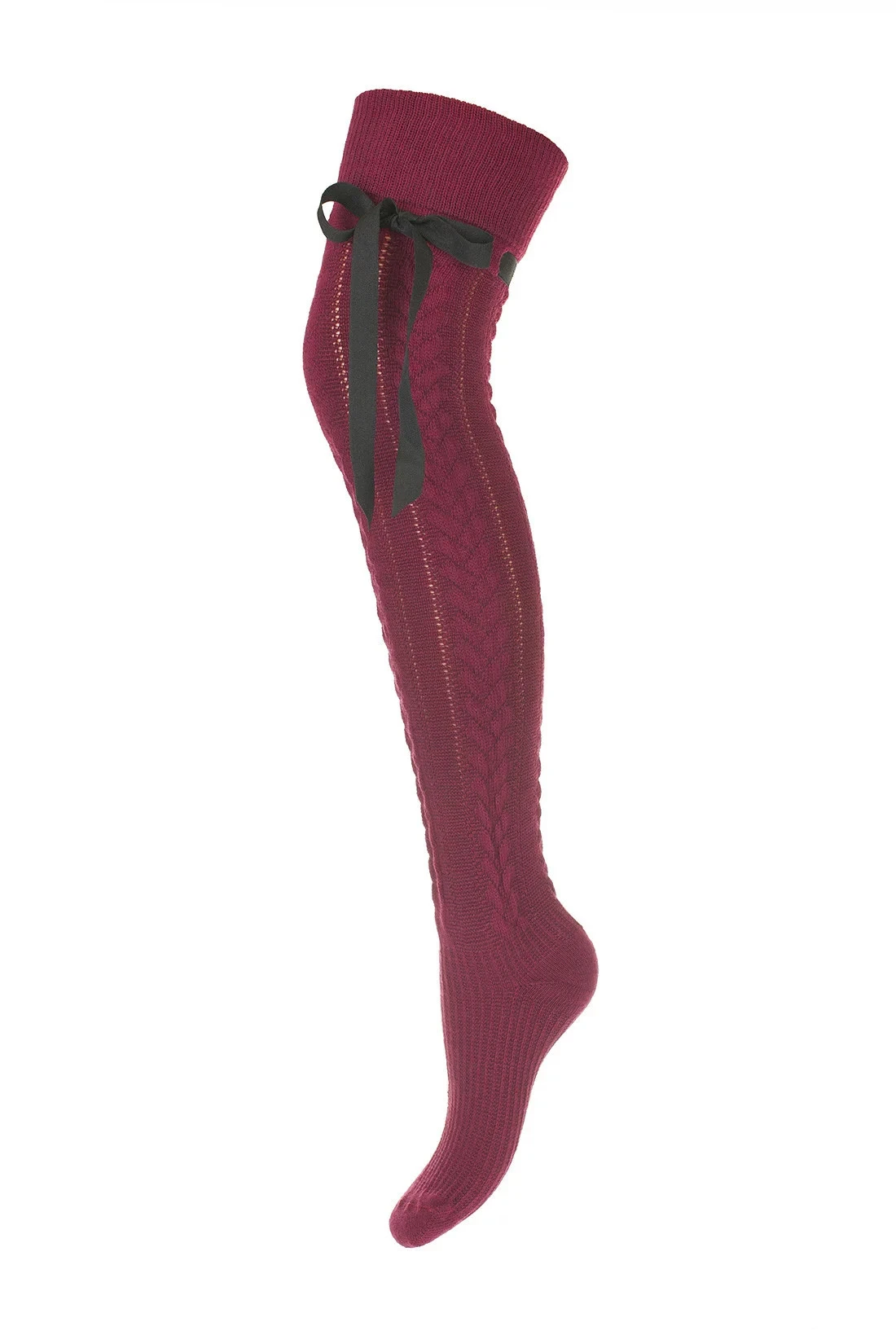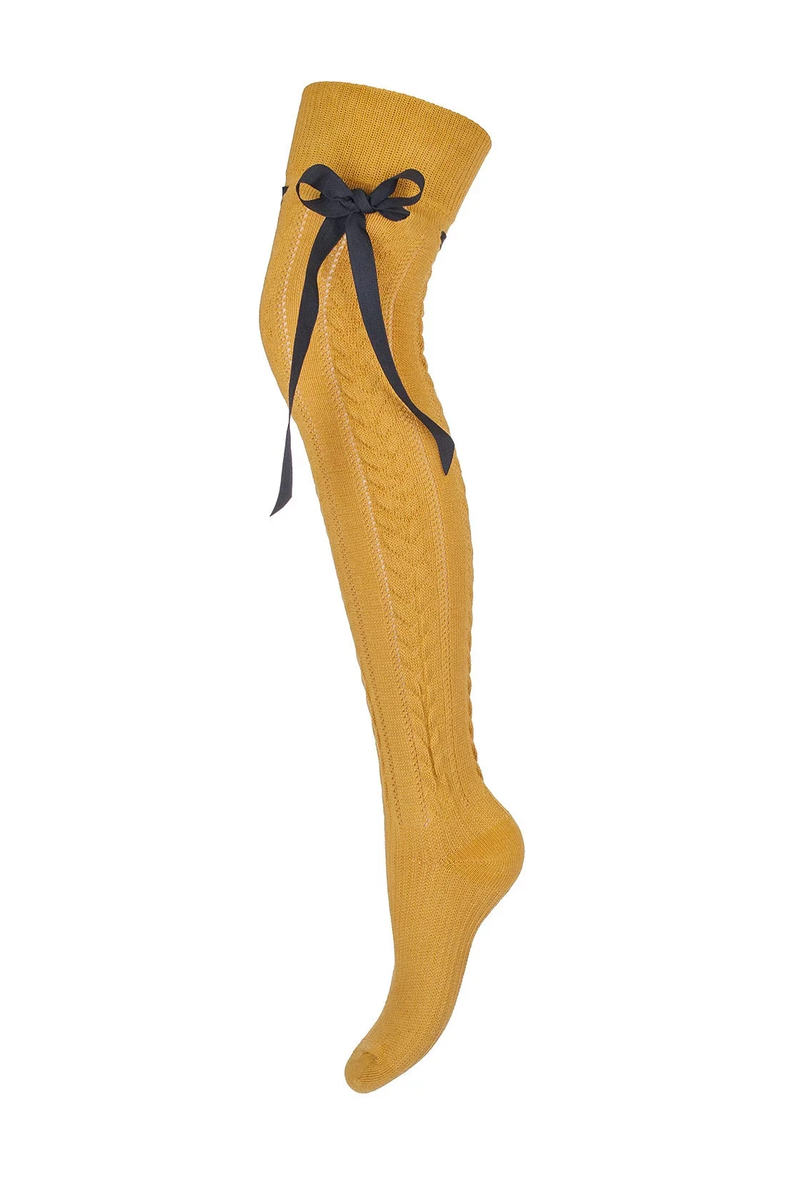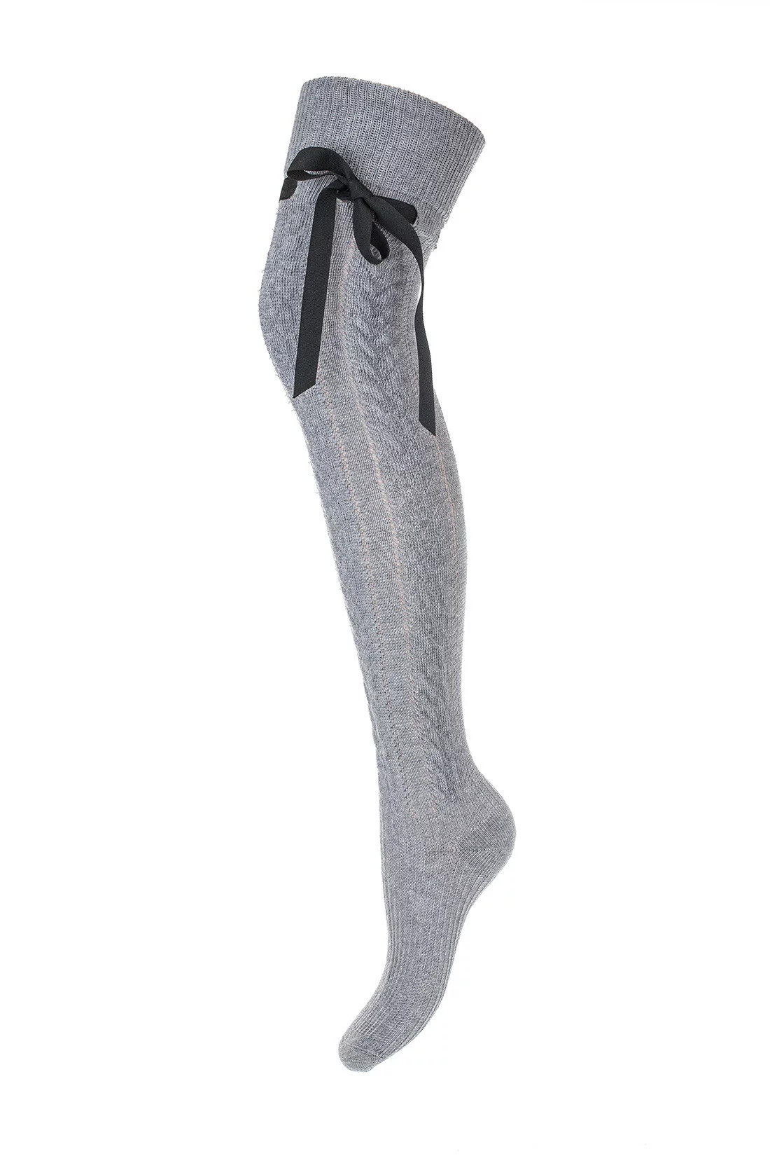 Dámské nadkolenky ze vzorované bavlny. Zdobené propletenou saténovou mašlí. Ploché švy a netlačící pásek zajišťují pohodlí při nošení.