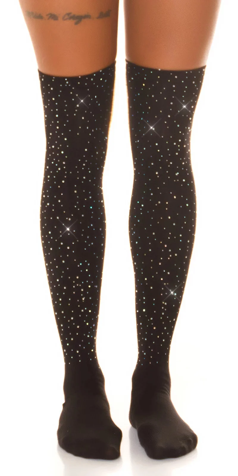 Dámské nadkolenky se třpytkami černé model 20823026 - In-style Fashion