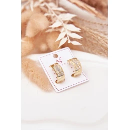 Ženské náušnice vyrobené ze zdravotní oceli v zlaté barvě jsou elegantním doplňkem, který dokonale doplní mnoho stylizací. Ozdobené třpytivými zirkony vypadají výjimečně žensky a efektně. Odolné, lehké a nadčasové — ideální jak na každý den, tak na zvláštní příležitosti.