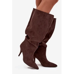 Dámské nazouvací kozačky na jehlovém podpatku Noretta – čokoládové