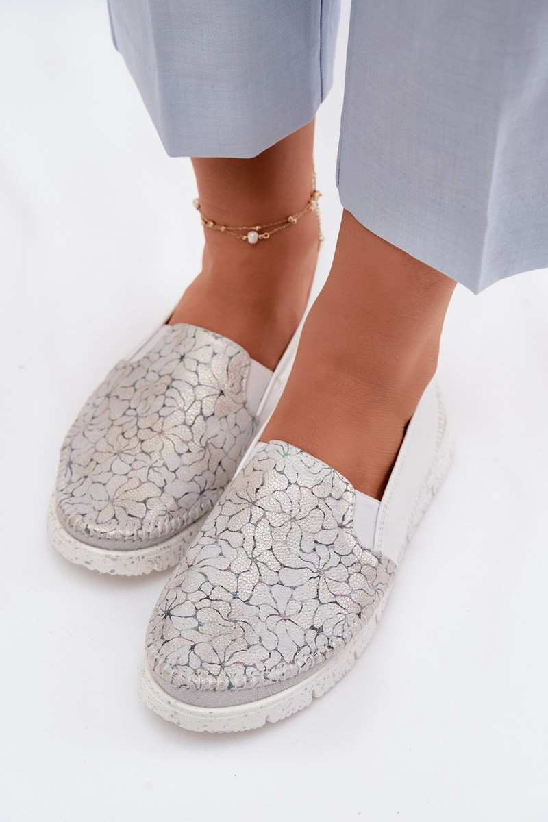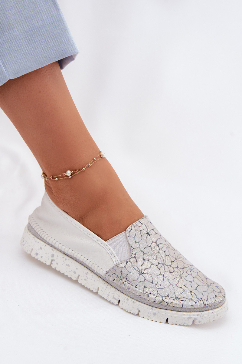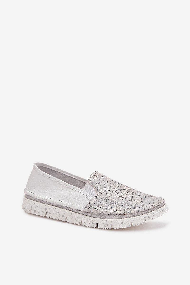 Dámské nazouvací kožené polobotky Maciejka 03512-70 Bílá-Stříbrná