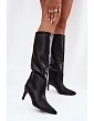 Dámské kozačky s vysokým shaftem sahajícím za koleno jsou elegantní a stylovou volbou na podzimně-zimní sezónu. Snadno se obouvají a jsou na tenkém podpatku, což nejenže dodává postavě lehkost, ale také jemně prodlužuje nohy a zvýrazňuje ženské tvary. Špičaté nosy přidávají rafinovaný akcent a kvalitní materiál zajišťuje odolnost a pohodlí. Tyto kozačky se skvěle hodí jak ke elegantním šatům a sukním, tak i k volnějších módním outfitem, čímž se stanou výrazným doplňkem zimního stylu. Při výběru velikosti prosíme podle tabulky velikostí. Při výběru velikosti se řiďte tabulkou velikostí.