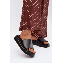 Dámské pantofle vyrobené z eko kůže. Hladké provedení jim dodává nadčasový charakter a platforma zajišťuje pohodlí při nošení a jemně zvýrazňuje siluetu. Model se skvěle hodí do každodenních outfitů, snadno se přizpůsobí letním šatům i casual setům. Elegantní volba pro ženy, které ocení jednoduchost a pohodlí. Při výběru velikosti se řiďte tabulkou velikostí.