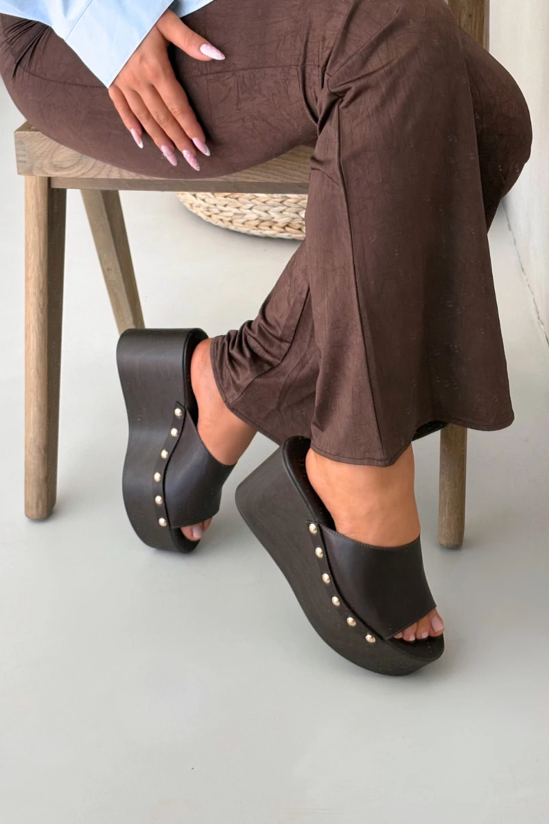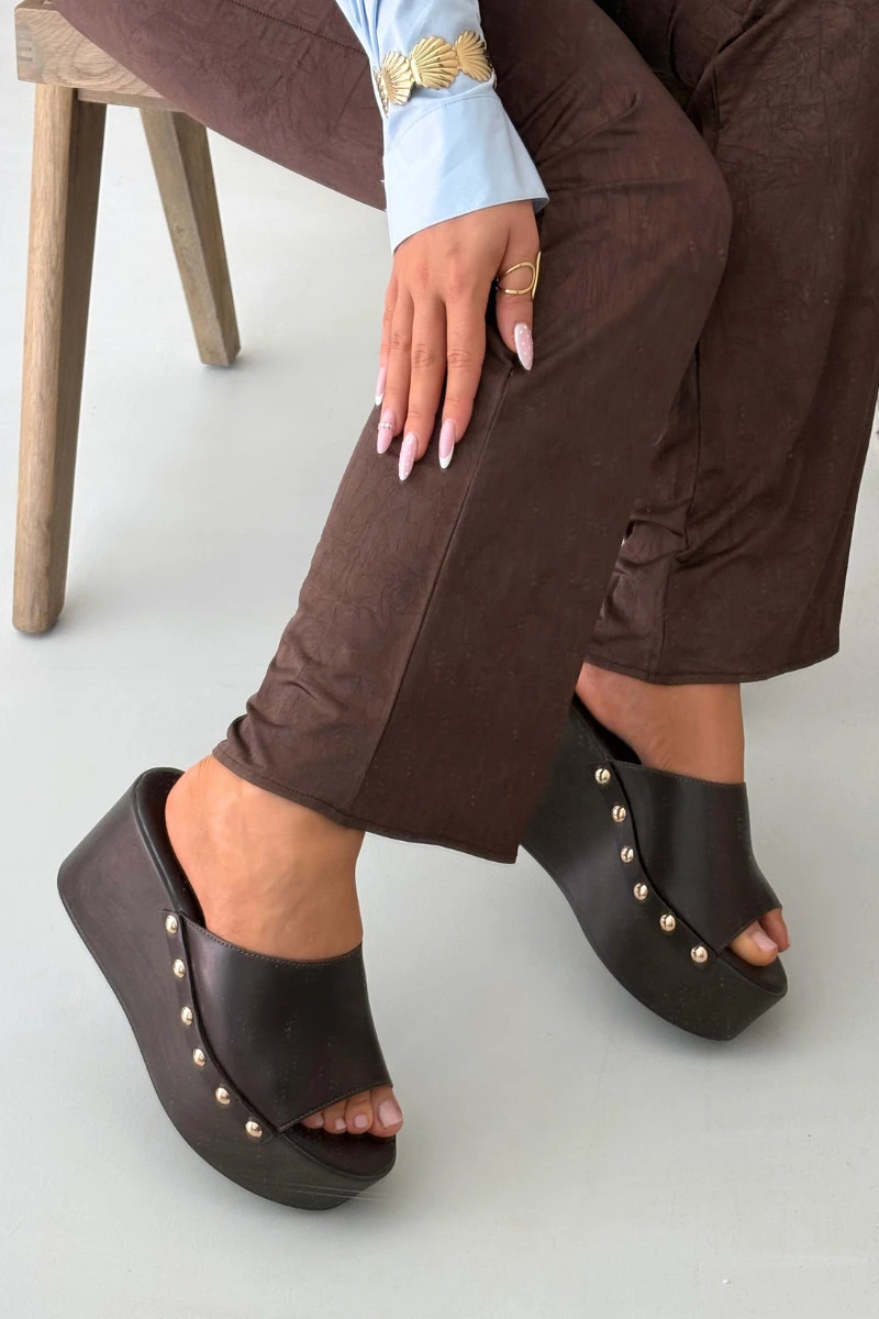 Dámské nazouváky na platformě s čokoládové model 21918831 - Boto