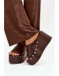 Stylové dámské nazouváky vyrobené z ekologické kůže jsou pohodlnou a efektní nabídkou na každodenní nošení. Podpatek spojený s platformou zajišťuje stabilitu a komfort při nošení, přičemž jemně zvýrazňuje siluetu. Zlaté nýty umístěné po stranách dodávají celku módní charakter. Model se skvěle hodí do letních stylizací – jak k šatům, tak k kalhotám či sukním. Je to ideální volba pro ženy, které ocení pohodlí spojené s výrazným stylovým detailem. Při výběru velikosti se řiďte tabulkou velikostí.