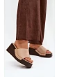 Stylové dámské sandály vyrobené z ekologické kůže. Kotníková platforma zajišťuje stabilitu a pohodlí při nošení, zároveň jemně zeštíhluje siluetu. Zlaté cvočky umístěné po stranách tvoří efektní detail. Tento model se skvěle hodí do letních outfitů – jak s šaty, tak s každodenními sety. Ideální volba pro ženy, které ocení pohodlí spojené s výrazným stylovým akcentem. Při výběru velikosti se řiďte tabulkou velikostí.