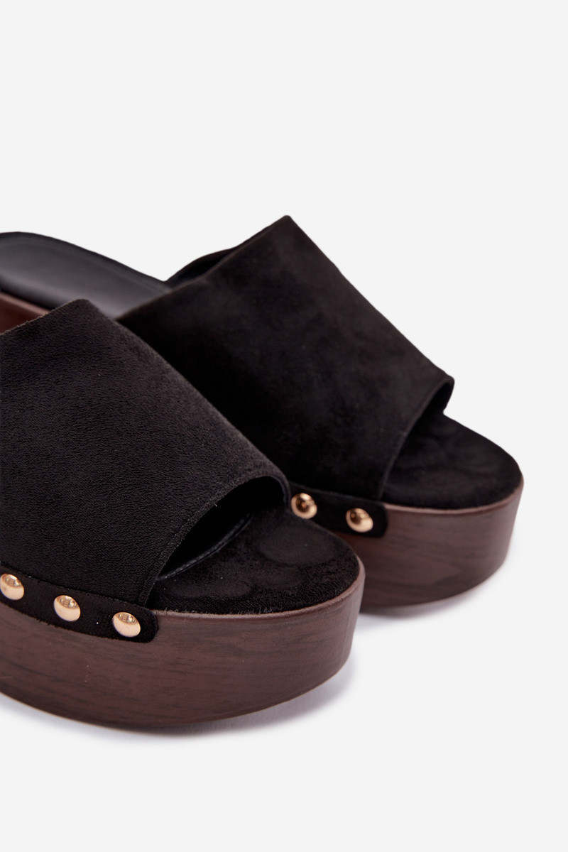 Dámské nazouváky na platformě se zlatými přezkami Eko semiš Černé Helivina