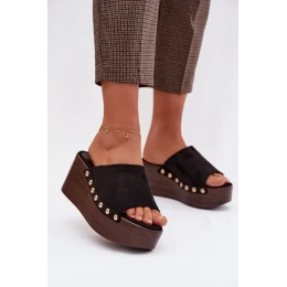 Dámské pantofle vyrobené z eko semiše jsou stylovým návrhem na každý den. Klín s platformou zajišťuje stabilitu a pohodlí při nošení a zároveň jemně zvýrazňuje siluetu. Zlaté cvočky na bocích dodávají celku moderní charakter. Model je ideální pro letní outfity – jak k šatům, tak k nohavicím nebo sukním. Ideální volba pro ženy, které ocení pohodlí spojené s výrazným stylovým detailem. Při výběru velikosti se řiďte tabulkou velikostí.