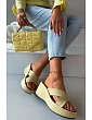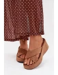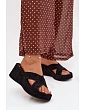 Dámské pantofle vyrobené z eko semiše jsou stylovým a pohodlným návrhem na každý den. Model s platformou a platformou zajišťuje stabilitu a pohodlí při nošení, přitom jemně zeštíhluje postavu. Vepředu jsou dva proplétající se pásky, které dodávají celku módní a elegantní charakter. Pantofle se skvěle hodí do letních stylizací, spojující pohodlí s moderním vzhledem. Při výběru velikosti se řiďte tabulkou velikostí.