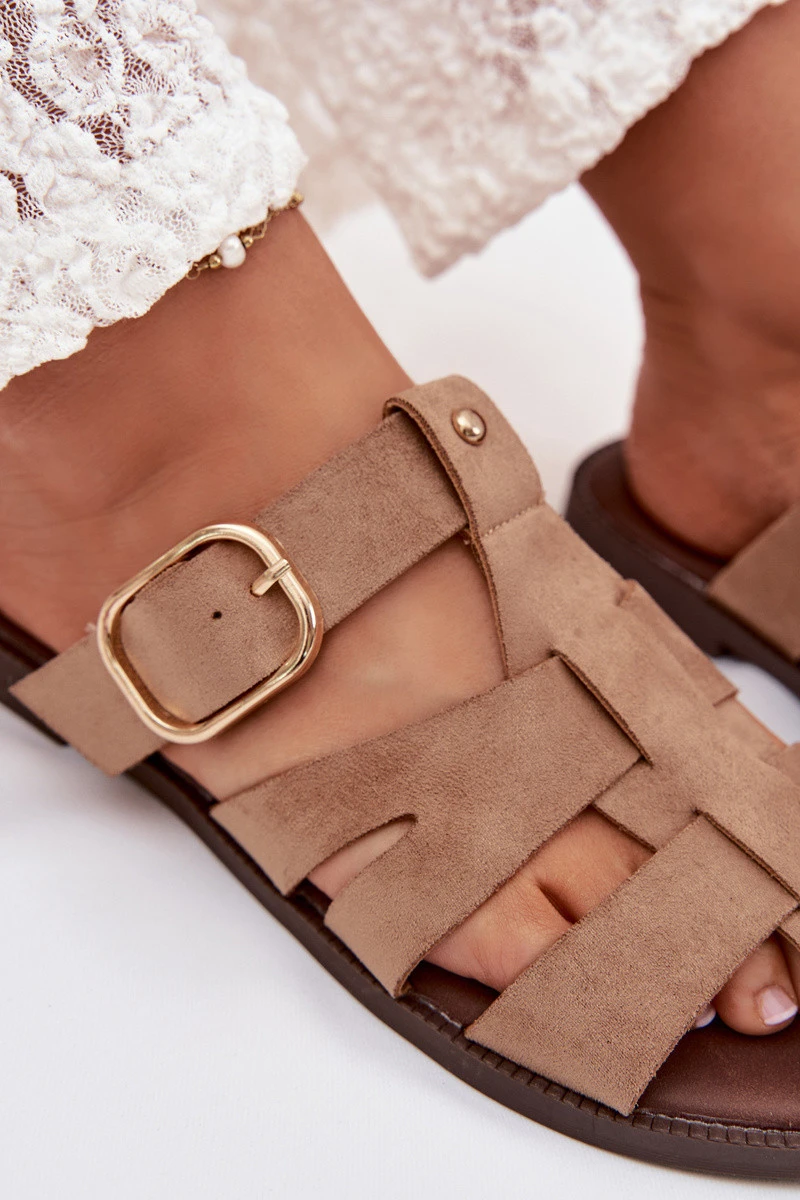 Dámské nazouváky na ploché podrážce s pásky a zlatou sponou Bežové Elzora