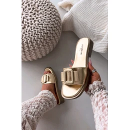 Dámské nazouváky na ploché podrážce s zlatým přezkou model 21900550 - Boto