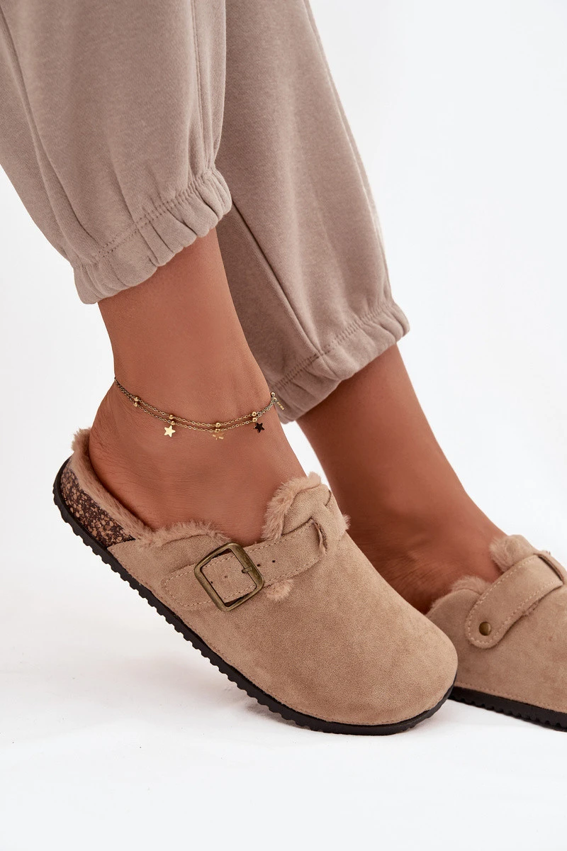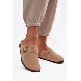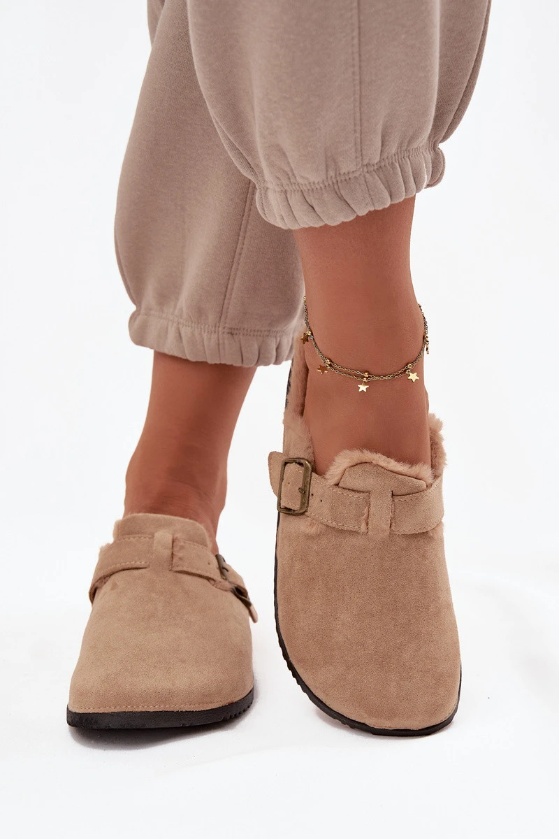 Dámské nazouváky s podšívkou s přezkou Béžové model 21715161 - Boto