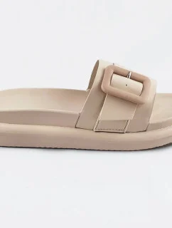 Béžové dámské pantofle s přezkou model 17352356