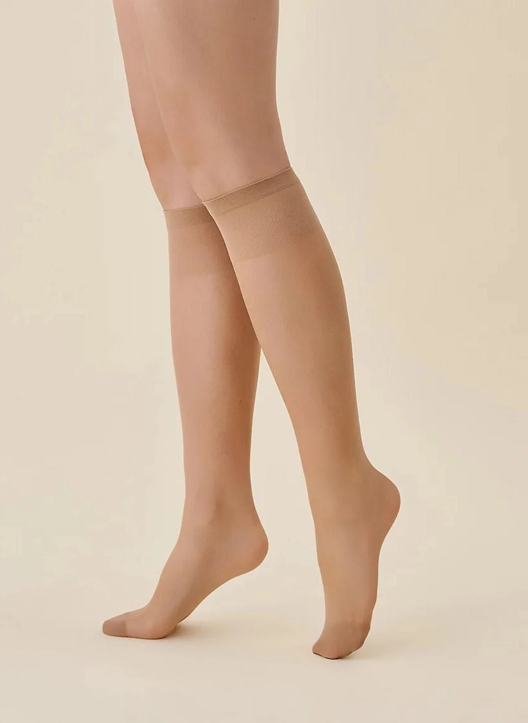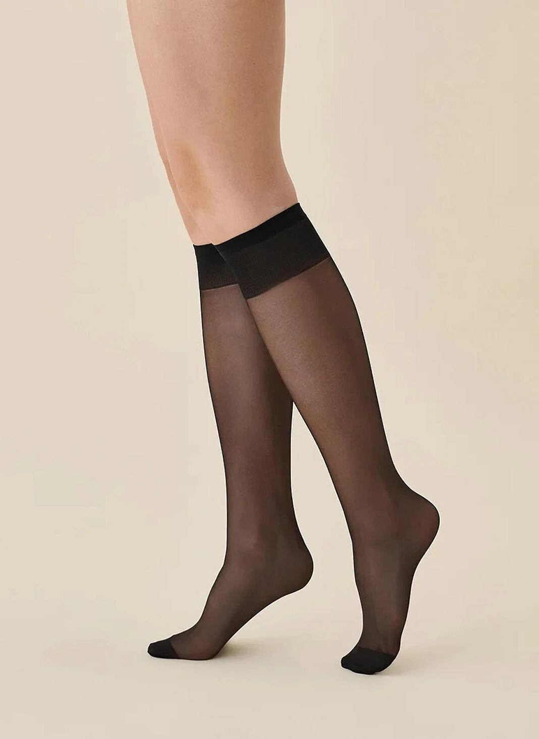 Podkolenky jsou vyrobené z lycry s jemností 15 DEN. Model má lem, který při nošení netlačí.