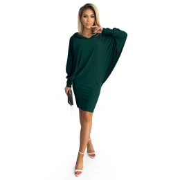 Dámské netopýří šaty v lahvově zelené barvě s kapucí model 17923554 - numoco