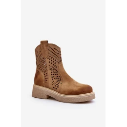Dámské nízké kozačky z semiše s podrážkou Bežové model 21652391 - Zazoo