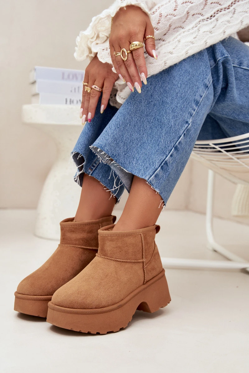 Dámské nízké sněhule Mavelle s kožíškem – camel