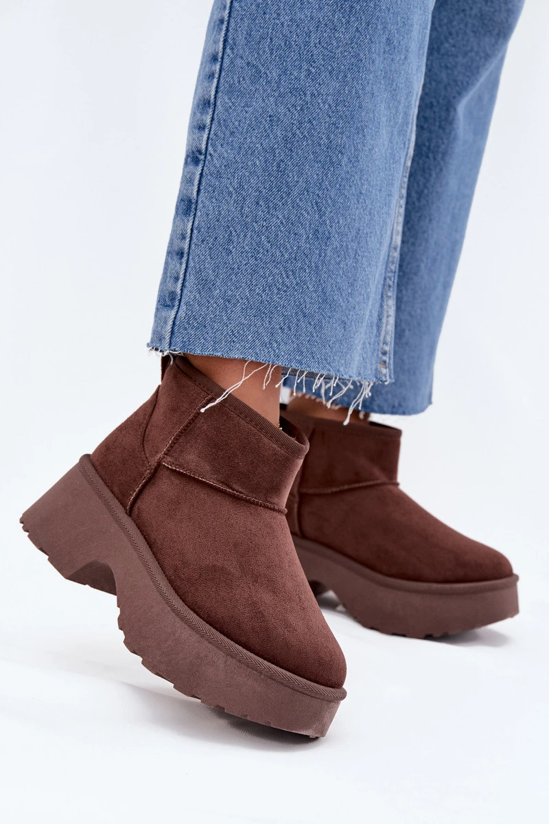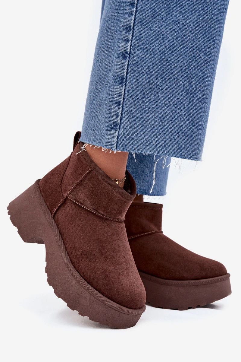 Dámské Nízké Sněhule Na Klínku S Teplým Kožíškem Hnědé Mavelle