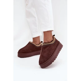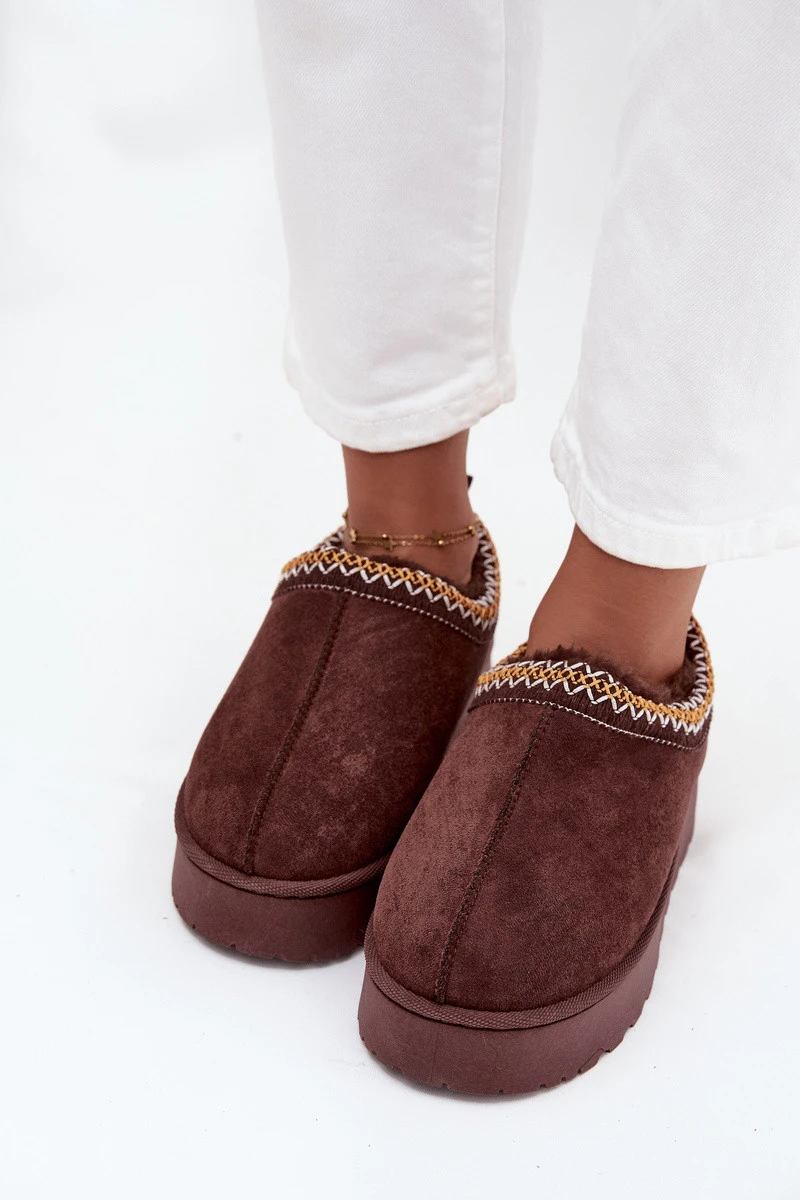 Dámské nízké sněhule Taliah na platformě s vyšíváním – čokoládové