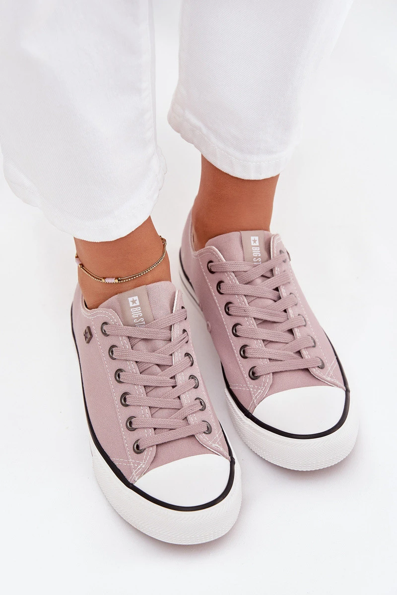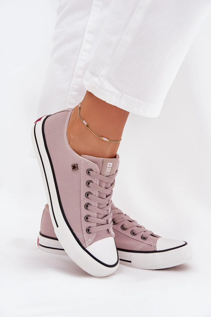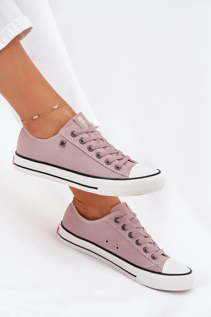 Dámské tenisky od značky Big Star vyrobené z textilního materiálu, v klasickém, nízkém provedení, jsou nadčasovou nabídkou, která nikdy nevyjde z módy. Gumová podrážka zajišťuje pohodlí a přilnavost, což je činí ideální volbou na každodenní nošení. Dokonalé pro neformální stylizace, hodí se k džínům, šatům nebo sukním a spojují komfort s módním vzhledem. Při výběru velikosti se řiďte tabulkou velikostí.