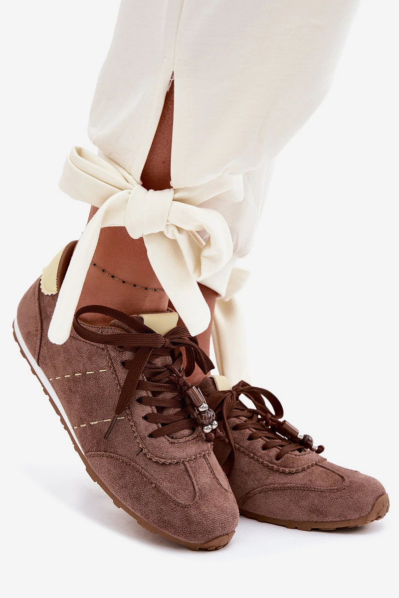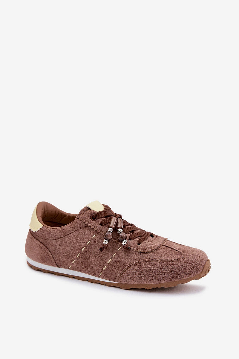 Dámské nízké tenisky s korálky Hnědé Galora