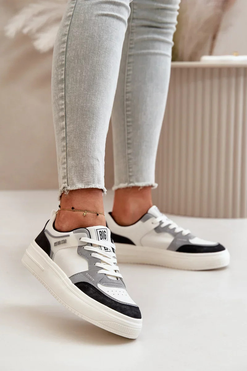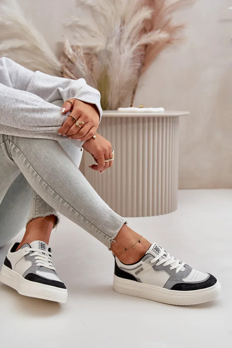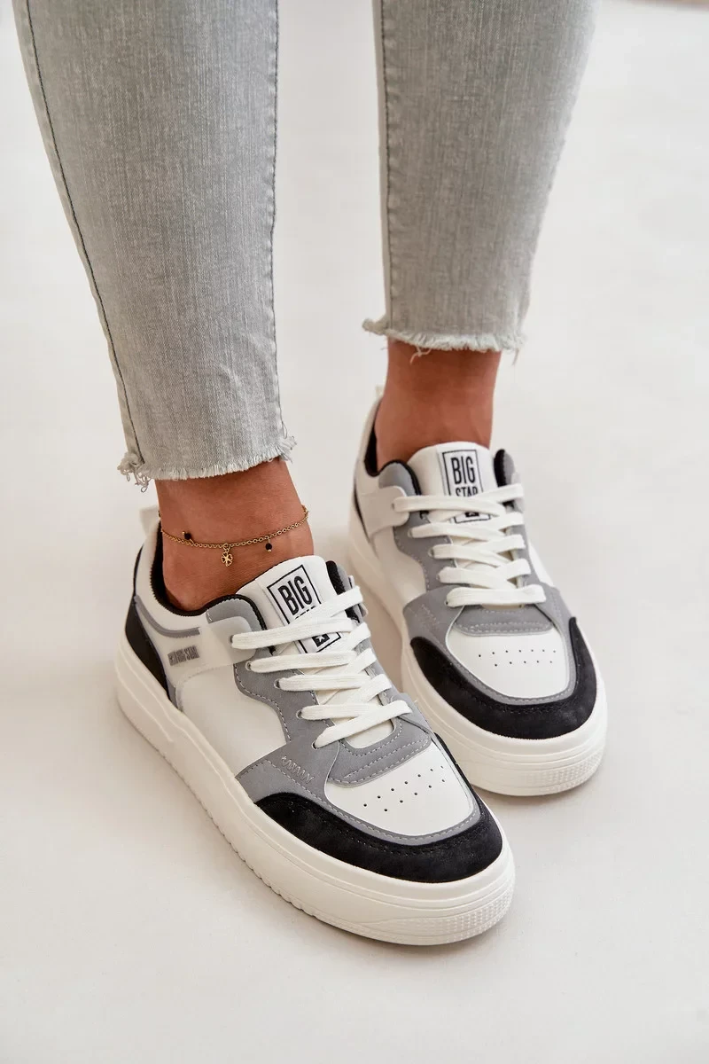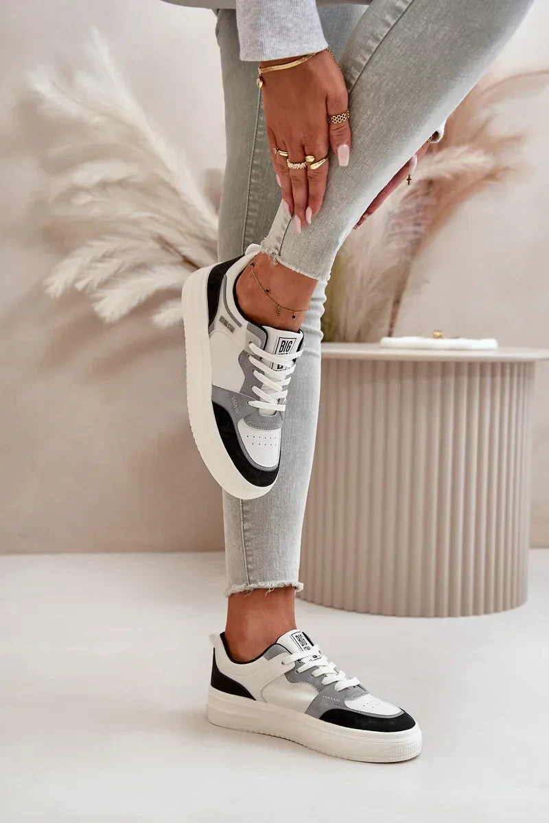 Dámské Nízké Tenisky Z Eko Kůže Big Star Bílo-Šedé