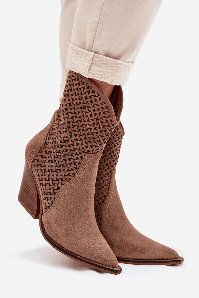 Dámské kotníkové boty vyrobené z eko semiše jsou stylovou volbou na přechodné období. Otevřená část svršku dodává lehkost a moderní vzhled, zatímco tenké, prodloužené špičky zvýrazňují linii nohy. Stabilní, zkrácený podpatek zajišťuje pohodlí při každodenním nošení, a zip usnadňuje obouvání a svlékání. Tento univerzální model se skvěle hodí jak k běžným, tak elegantnějším outfitům. Při výběru velikosti se řiďte tabulkou velikostí.