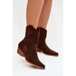 Dámské otevřené kotníkové boty na podpatku Čokoládové model 21919510 - Boto