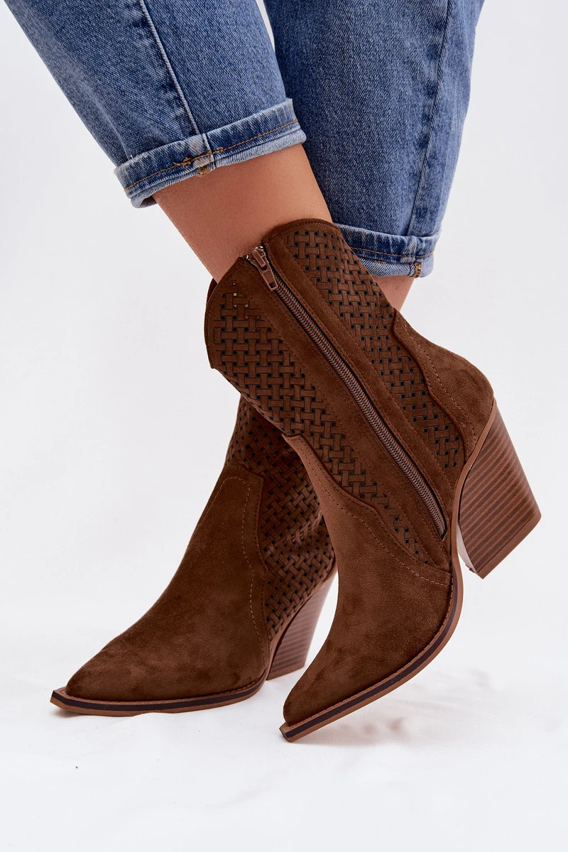 Dámské kotníkové boty vyrobené z eko semiše jsou stylovou volbou na přechodné období. Otevřená část svršku dodává lehkost a moderní vzhled, zatímco tenké, prodloužené špičky zvýrazňují linii nohy. Stabilní, zkrácený podpatek zajišťuje pohodlí při každodenním nošení, a zip usnadňuje obouvání a svlékání. Tento univerzální model se skvěle hodí jak k běžným, tak elegantnějším outfitům. Při výběru velikosti se řiďte tabulkou velikostí.