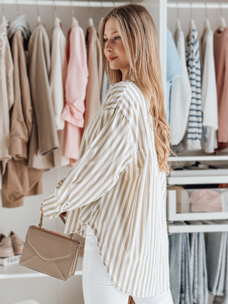 Přidání recenze k Dámské oversize tričko s prodlouženým zadním dílem SAMONE v béžové barvě s bílými pruhy FashionStreet DY0463