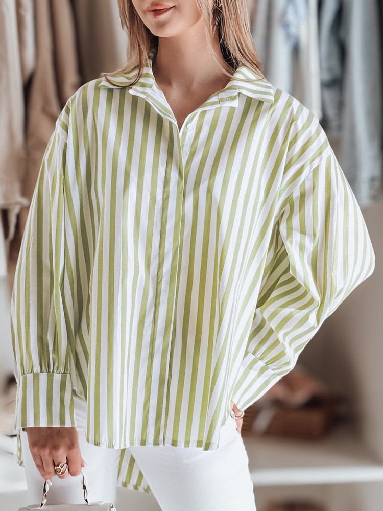 Dámská oversize košile s prodlouženým zadním dílem, zapínáním na knoflíky. Volný střih dokonale sedí na postavě a zajišťuje pohodlí po celý den. Dlouhé rukávy s manžetami na knoflíky dodávají eleganci, zatímco pruhovaný vzor sleduje nadčasový trend. Ideální základ pro mnoho outfitů.