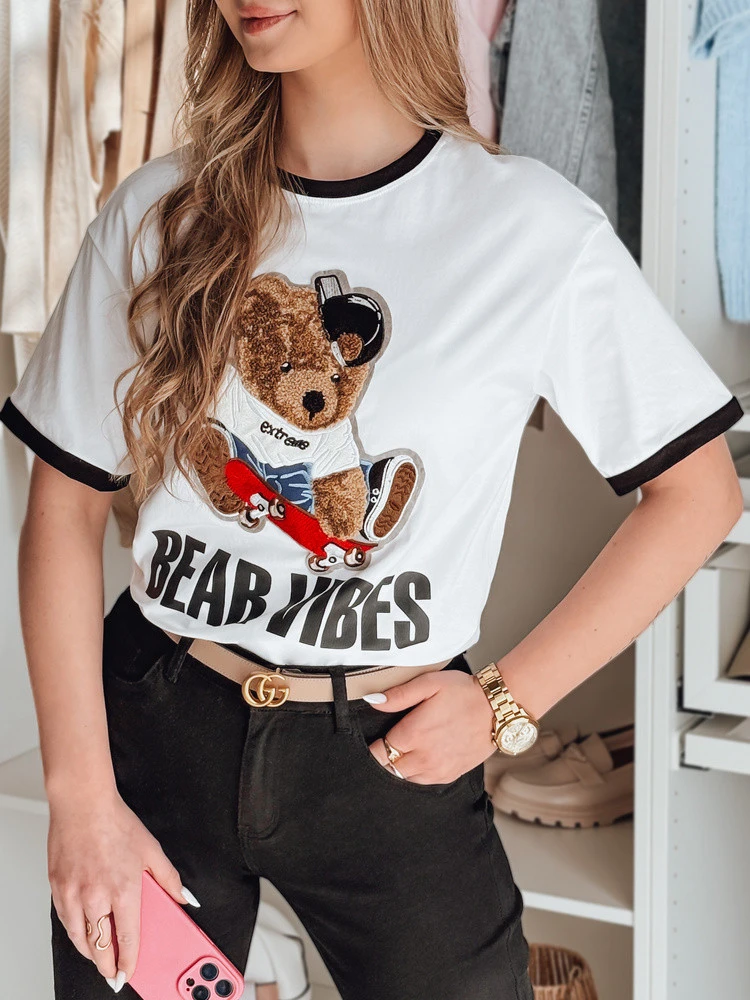 Dámské oversize tričko s výšivkou medvídka MISIONISTA white FashionStreet RY2852